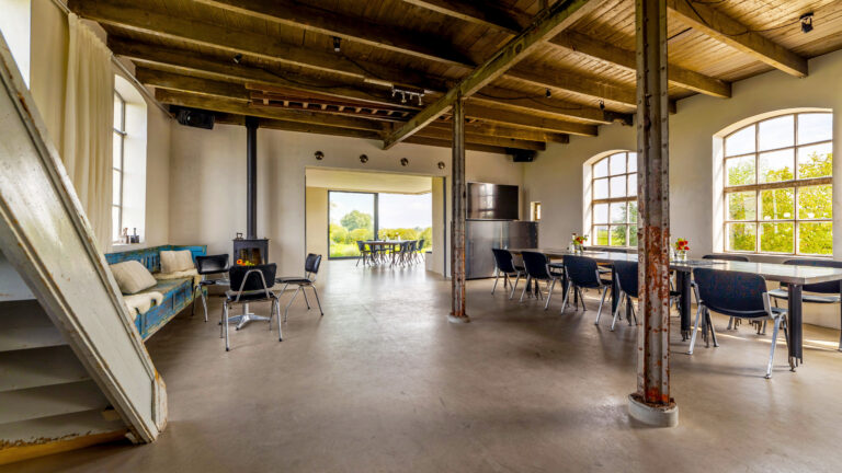 Een monumentale vergader- en retreatlocatie met een rijke geschiedenis. Ooit was dit een wasserij die het linnen van het ziekenhuis en later ook van de welgestelde locals kraakhelder maakten. Vervolgens werd het een palingrokerij. En als je goed kijkt, zie je een granaatinslag in een stalen steunpilaar uit de Tweede Wereldoorlog. De huidige eigenaar, én architect, verbouwde het pand met gevoel voor historie en lef, waardoor oude ziel en inspirerende stijl moeiteloos samengaan.