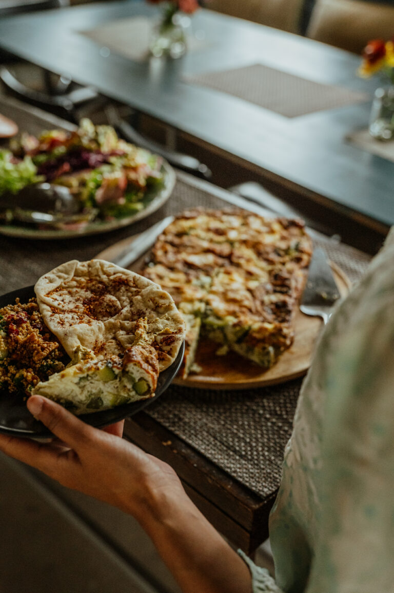 Jacqueline werkt samen met lokale cateraars voor regular tot vegan snacks, lunches en diners.