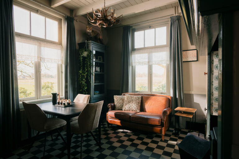 Met eigen handen heeft Willeke het woonhuis verbouwd, geschuurd, geschilderd en gestyled. Iedere ruimte is anders aangekleed en ingericht, waardoor ze allemaal hun eigen vibe hebben met respect voor het boeren buitenleven en het verleden.